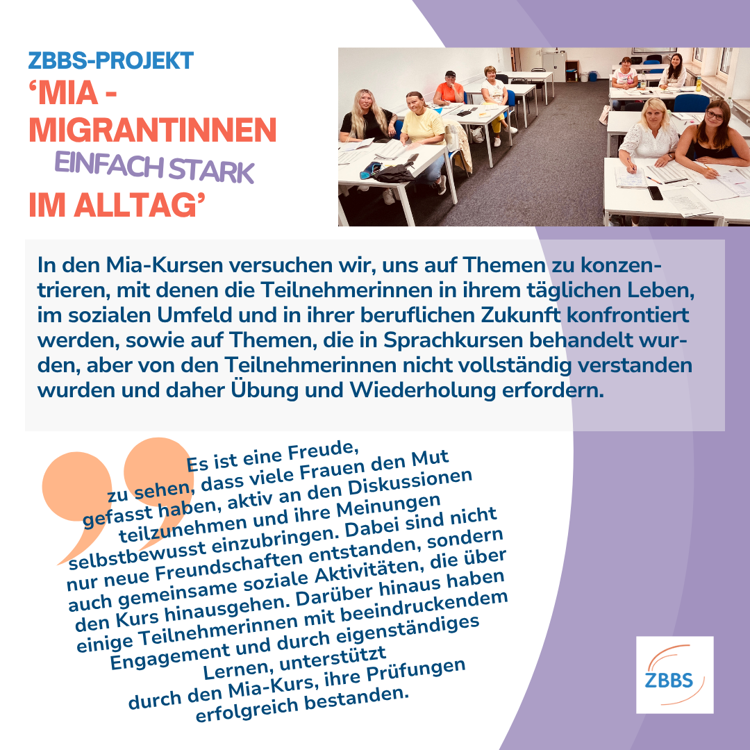 Heute lernt ihr das Projekt ‚MiA – Migrantinnen im Alltag‘ kennen, das durch verschiedene Kurse Migrantinnen beim An-und Weiterkommen in Deutschland begleitet.