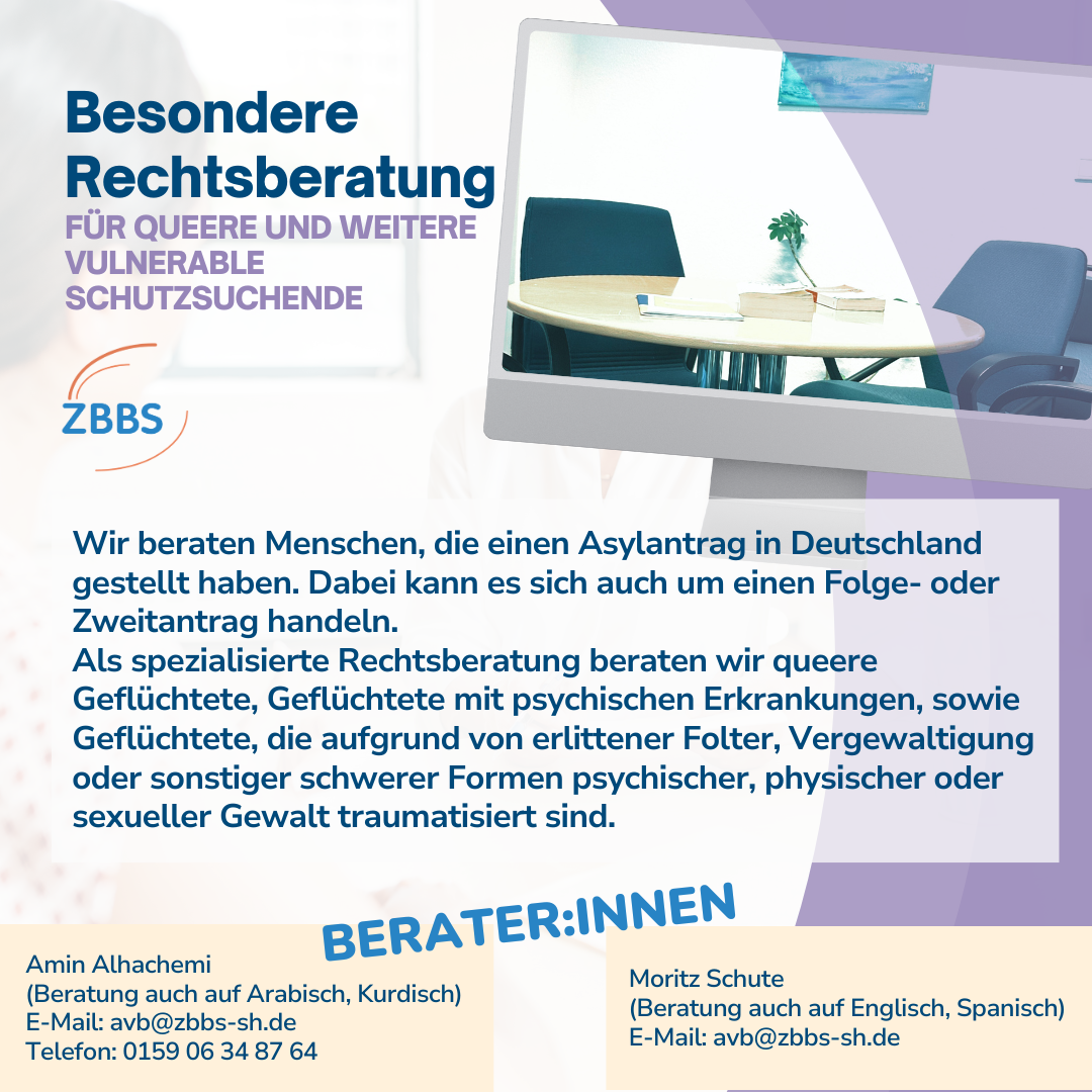 Heute lernt ihr das Projekt ‚Besondere Rechtsberatung für queere und weitere vulnerable Schutzsuchende‘ kennen, das als spezialisierte Rechtsberatung queere Geflüchtete, Geflüchtete mit psychischen Erkrankungen sowie Geflüchtete berät, die aufgrund von erlittener Folter, Vergewaltigung oder sonstiger schwerer Formen psychischer, physischer oder sexueller Gewalt traumatisiert sind.