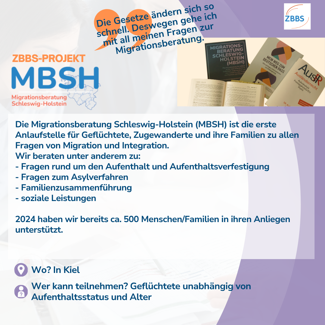 Heute lernt ihr das ZBBS-Projekt ‚MBSH – Migrationsberatung Schleswig-Holstein‘ kennen, die erste Anlaufstelle für Geflüchtete, Zugewanderte und ihre Familien in Schleswig-Holstein.