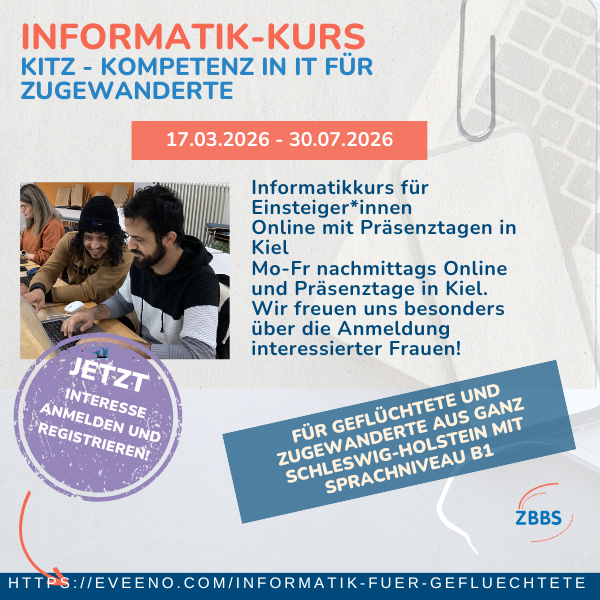 Am 17.03.2026 startet der neue Informatik-Kurs „KITZ – Kompetenz in IT für Zugewanderte“ (vormals „InGe“). In viereinhalb Monaten werden Basiskenntnisse…